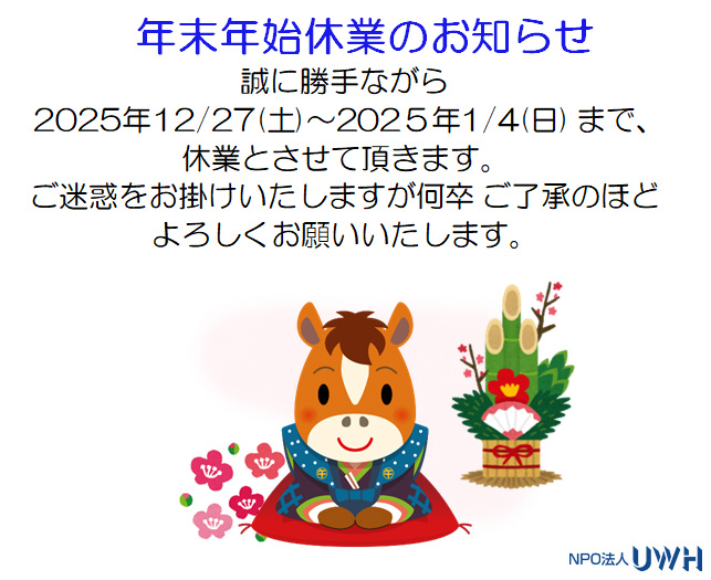 年末年始休業のお知らせ